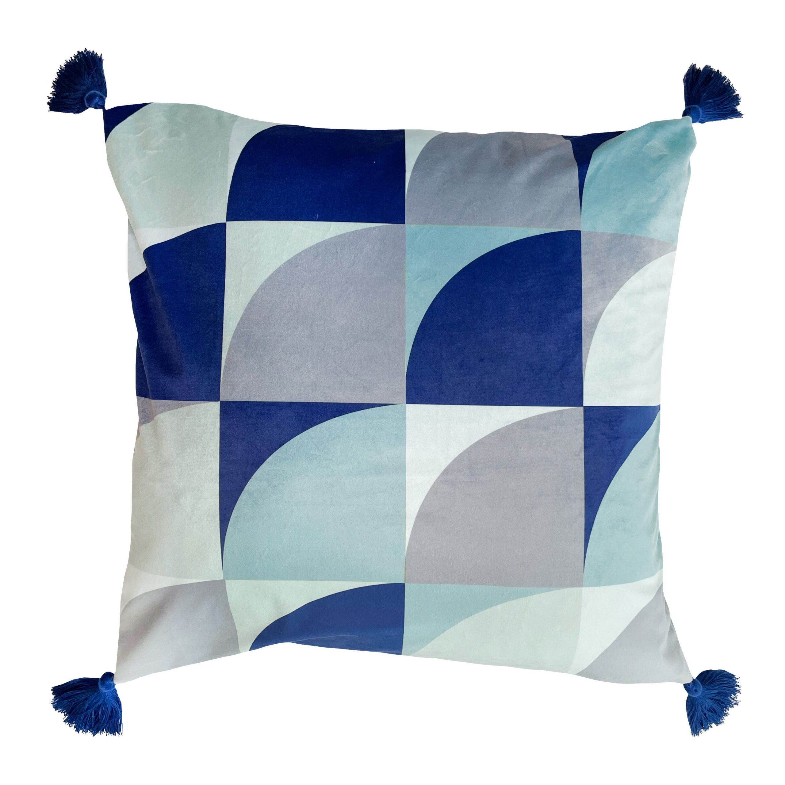 CURVE GEO- BLUE WITH FRINGE 45 X 45
