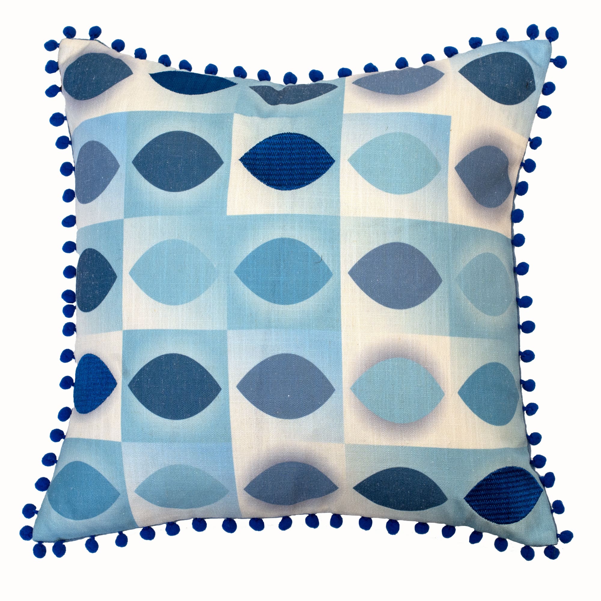 EMB BLUE ALMOND SHAPE WITH POM POM 45 X 45