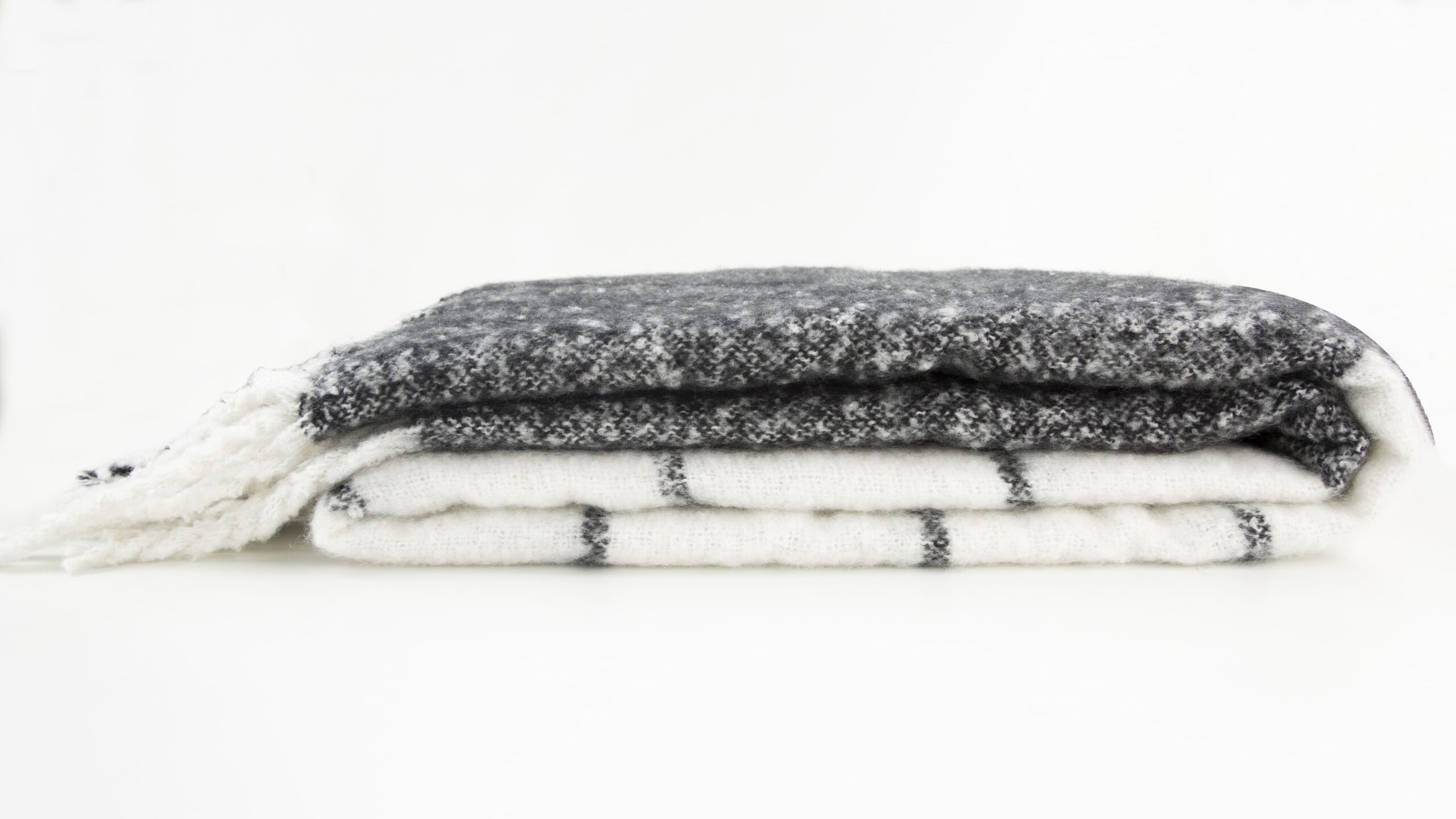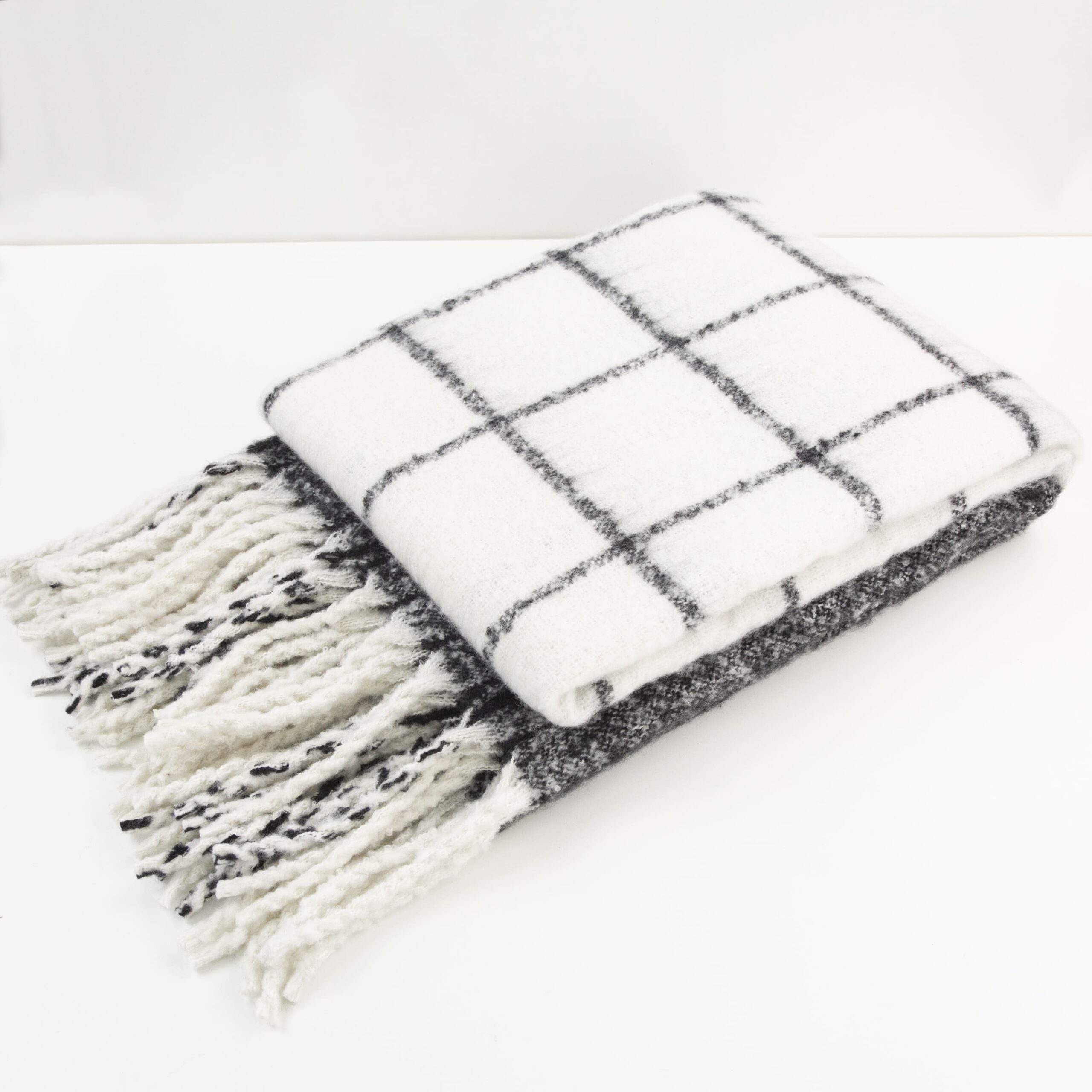 FAUX MOHAIR CHECK BLACK/IVORY 130 X 170