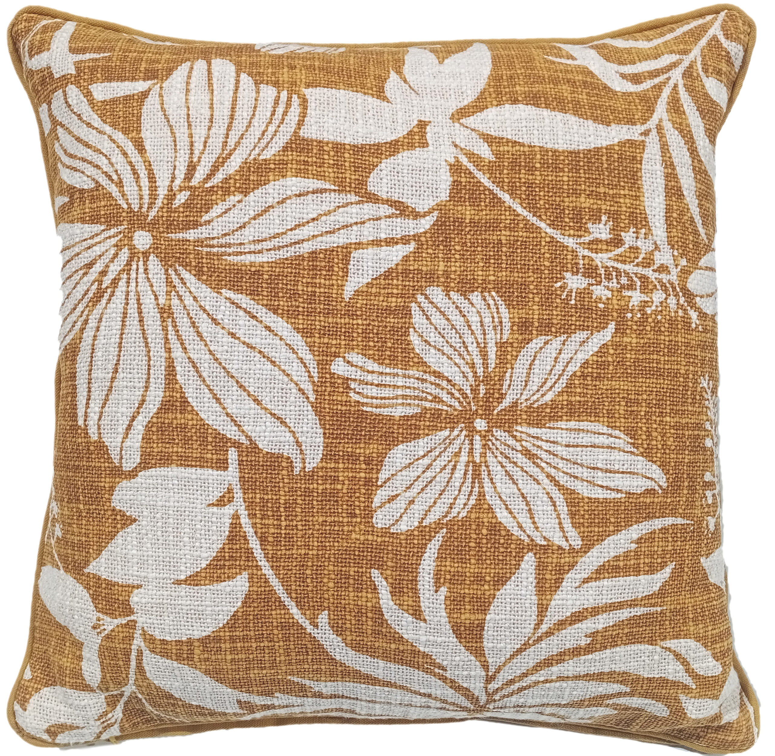 FLORAL PRINT ON LOOSE WEAVE MUSTARD 45 X 45