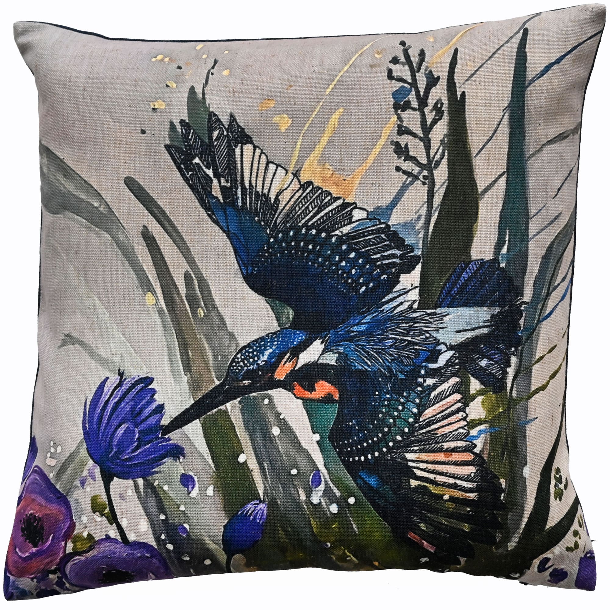 HUMMINGBIRD PRINT ON FAUX LINEN 45 X 45